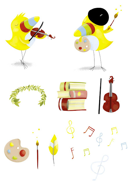Confesso que tenho um carinho especial por este cuco colorido, porque nasceu de imediato quando há 2 anos me foi dado o primeiro briefing. É uma espécie de mascote do colégio, que vai servindo para protagonizar cenas divertidas e compor cada página destes livrinhos, e que faz com que cada desenho seja mais divertido de fazer. É mesmo assim, às vezes os desenhos têm esta personalidade!